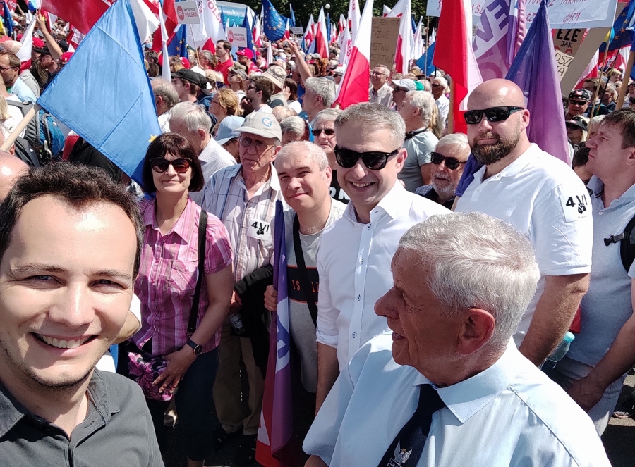 Szliśmy  razem  z  Donaldem Tuskiem, Lechem  Wałęsą, Rafałem Trzaskowskim, Włodzimierzem  Czarzastym, Robertem Biedroniem, przedstawicielami   partii  opozycyjnych, samorządowcami, związkami  zawodowymi.